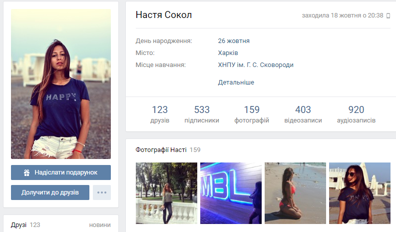 19-летняя Анастасия Сокол любила фотографироваться и отдыхать на пляже, а в момент трагической гибели была онлайн в соцсети "Вконтакте".
