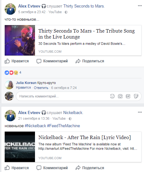 Евтеев часто постил у себя на странице песни любимых западных групп, а также был неравнодушен к футболу.