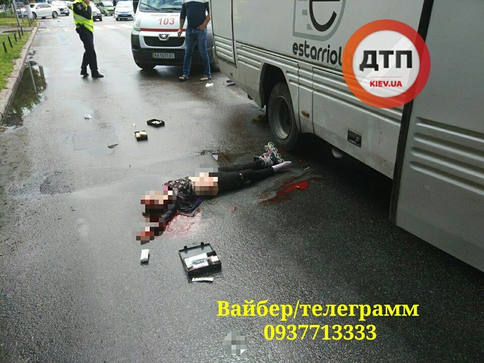 "Жуткое смертельное ДТП под Киевом в Борисполе: две девочки на переход на роликах прямо под автобус. Одна погибла на месте, ее тело протащило под колесами около 20 метров. Вторая в тяжелом состоянии госпитализирована", - написано в сообщении.