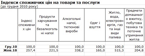 С декабря 2010 года по октябрь 2018 года потребительские цены в Украине выросли в 2,57 раза. Об этом сообщается на сайте Госслужбы статистики.