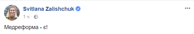 "Медреформа - есть!" - пишет нардеп от БПП Светлана Залищук.