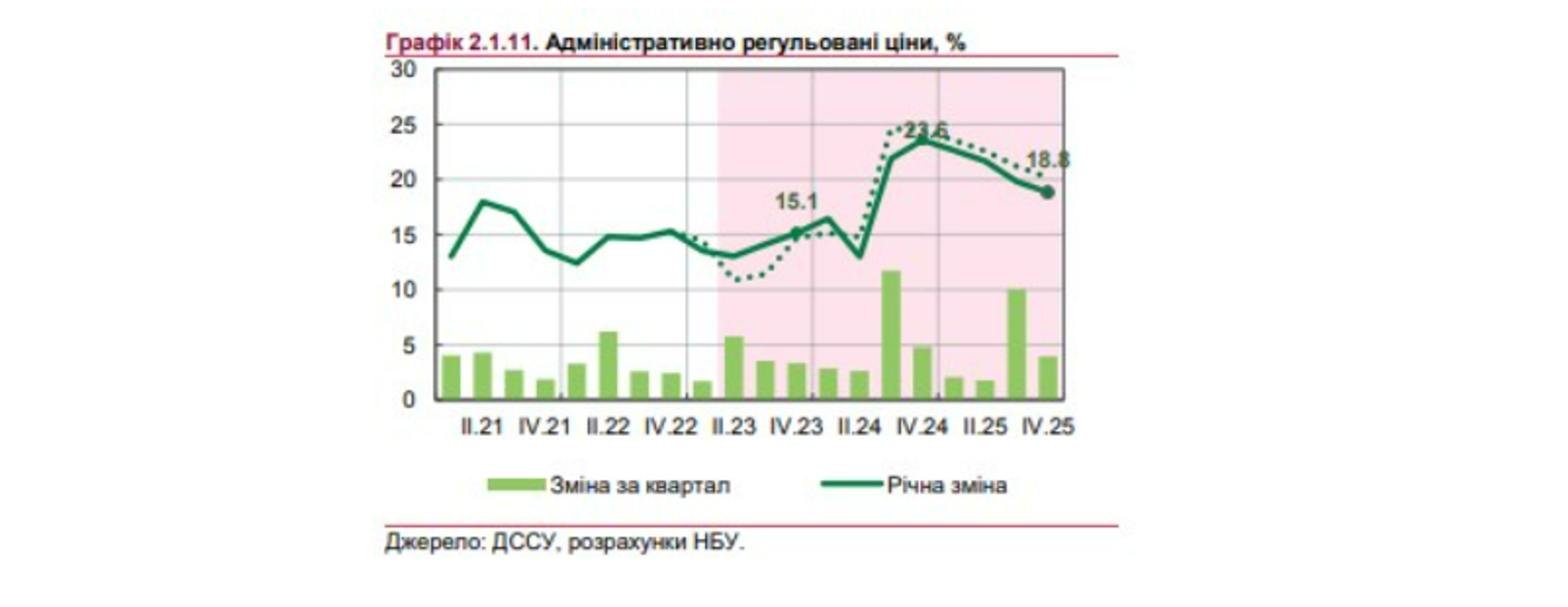 «На прогнозному горизонті рівень адміністративної інфляції визначатимуть насамперед урядові рішення з приведення тарифів на послуги ЖКГ до ринкових рівнів у зв’язку з потребою усунення дисбалансів в енергетичному секторі», — йдеться в огляді.