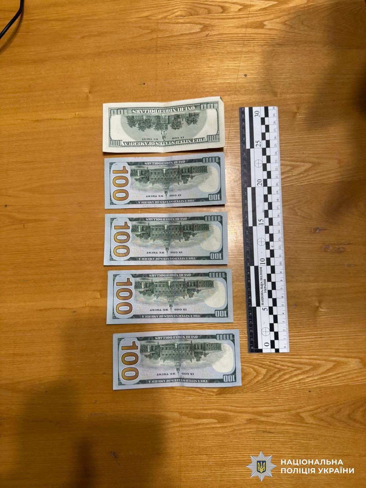 Правоохоронці затримали чоловіка у порядку ст. 208 Кримінального процесуального кодексу України одразу після передачі правоохоронцю частини неправомірної вигоди у сумі 500 доларів США.