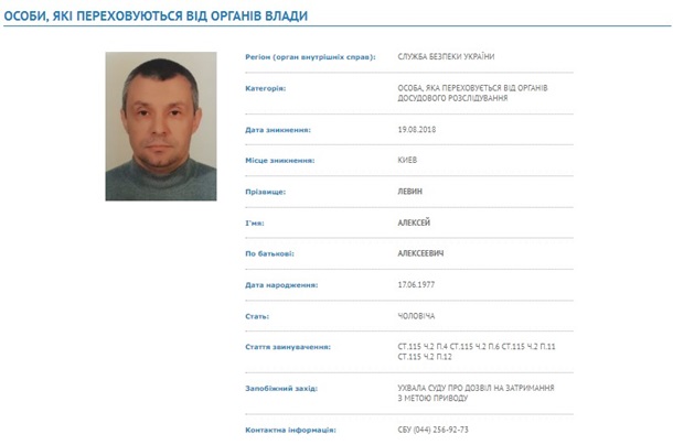 Из поля зрения правоохранителей Левин исчез 19 августа 2018 года.