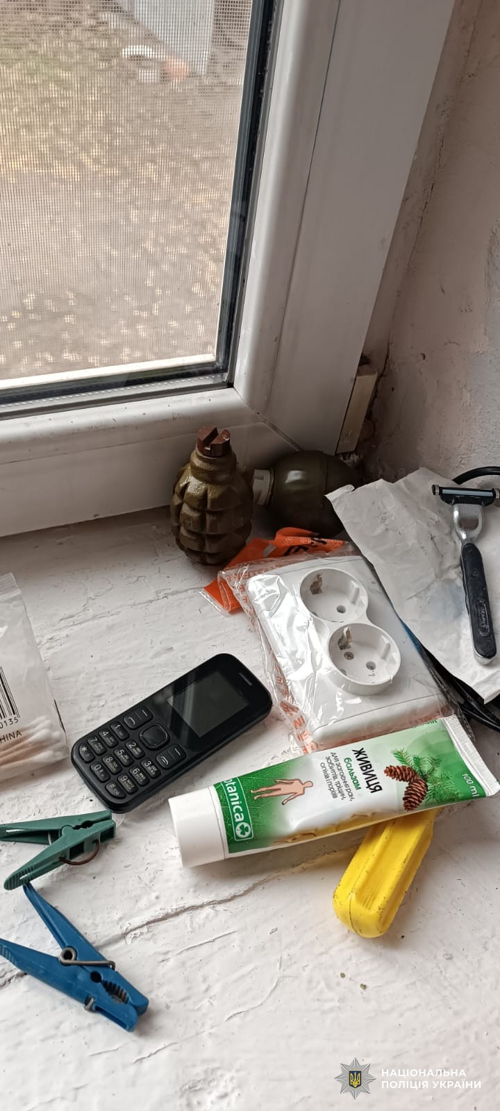 Під час слідчих дій правоохоронці вилучили дві гранати – Ф-1 та РГН, підривач, 87 набоїв 5,45 калібру та близько пів кілограма зірваних для сушіння та сухі рослини роду коноплі.