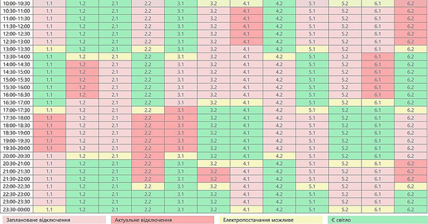 Зазначається, що станом на 10:00 оновлений розклад ГПВ запроваджено відповідно до нових розпоряджень НЕК "Укренерго".