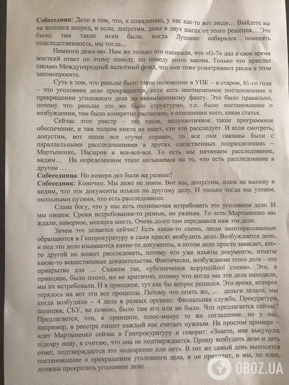 Так, во время "интервью" Сытник рассказал о делах Мартыненко, Онищенко, Кулика, изъятых "$1.5 млн Януковича". Владея полной информацией о результатах резонансных расследований, Сытник посчитал правомерным передать секретные детали и личные данные фигурантов некоторых дел журналистам.