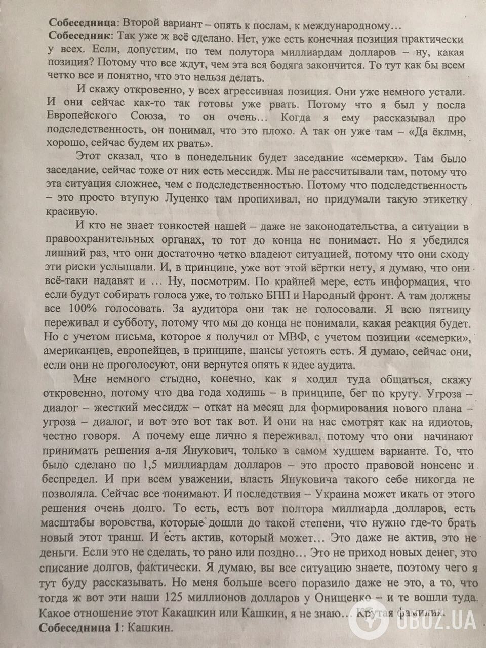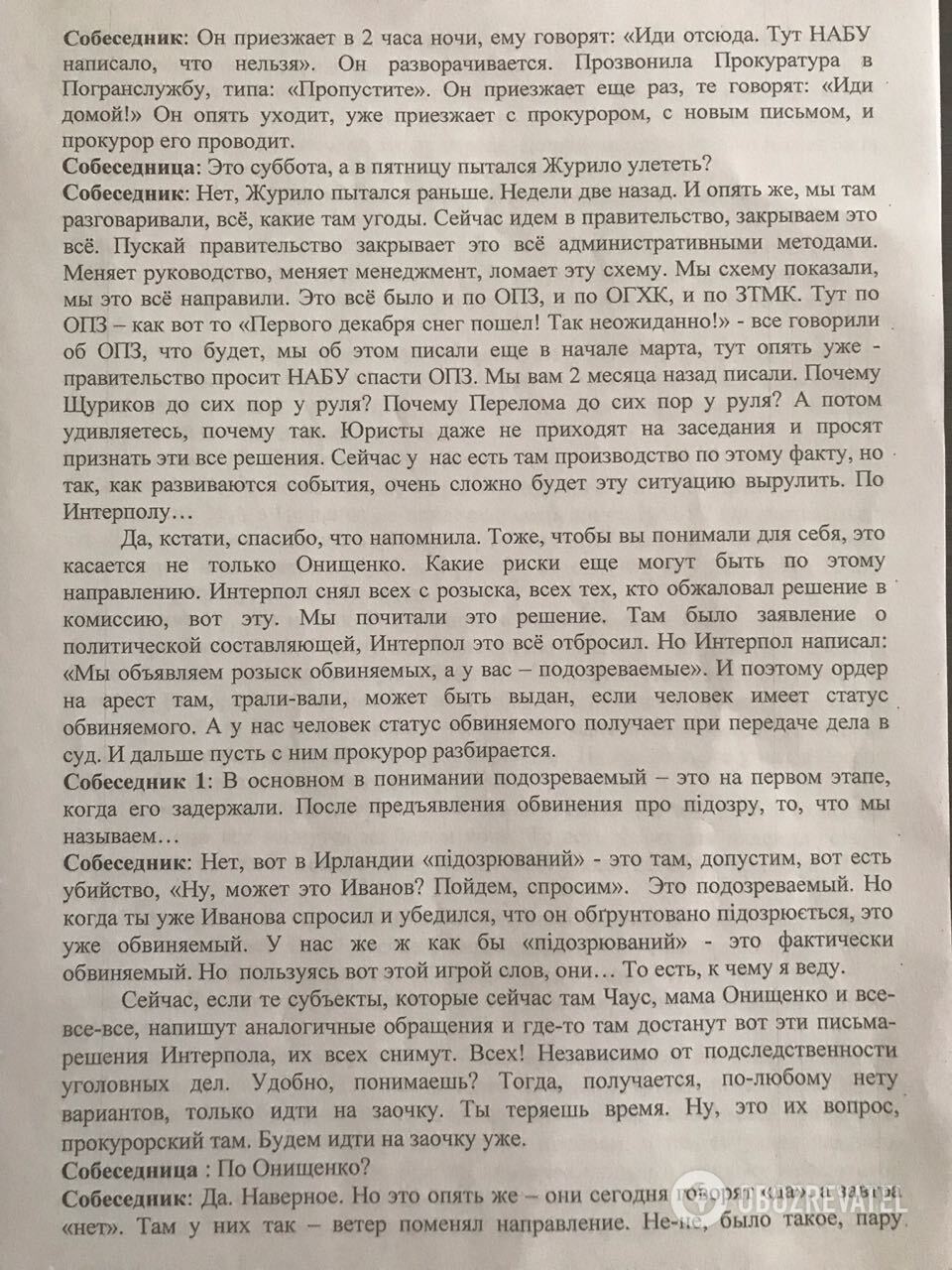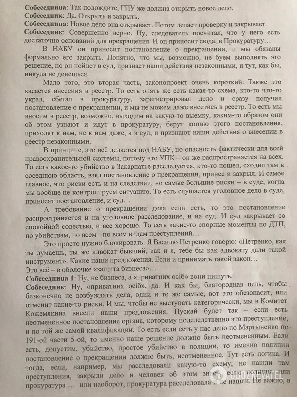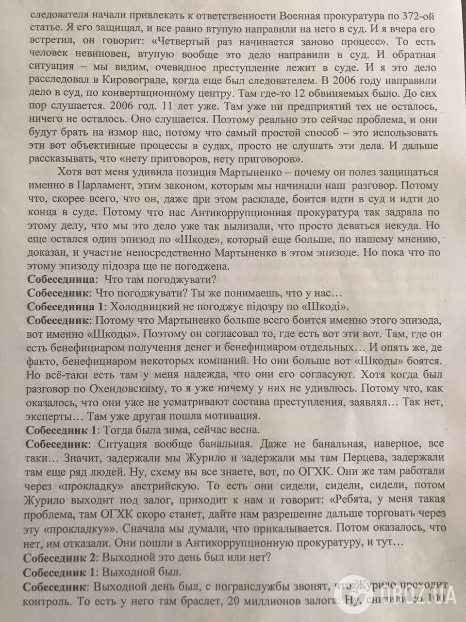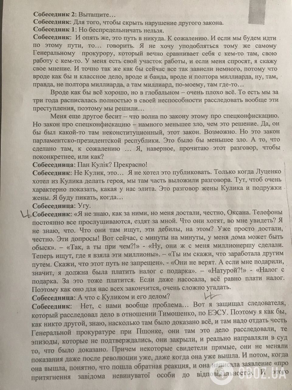 Цитирует также разговор жены Кулика с подругой: "Я не знаю, как за ними, но меня достали, честно, Оксана. Телефоны постоянно все прослушиваются, ездят за мной. Что они хотят во мне увидеть? Я не знаю, что. Что они там ищут, эти дебилы, на этом? Уже просто достали, честно. Эти допросы! Вот сейчас, с минуты на минуту, может быть обыск". – "Так а ты тут причем?!" - "Ну, они с меня миллионершу сделали. Теперь ищут, где я взяла свои миллионы". "Ты им скажи, что заработала другим путем. Скажи, что этот путь не запрещен". – "Они не верят. А если мне подарили, я должна была заплатить налог с подарка". – "Натурой?!" - "Налог с подарка. За это тоже платиться. Если даже насосала, все равно плати налог. Поэтому как оно для нас всех закончиться, очень сложно угадать".